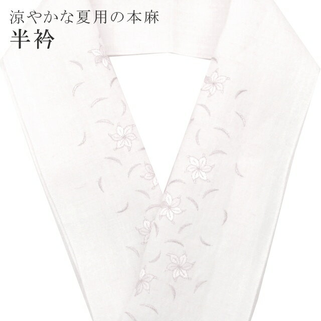 夏用 半衿 半襟 本麻 麻 盛夏 刺繍 ししゅう 7月 8月 無地 日本製 特選 白 sin6370-kbob12 【新品】【着物ひととき】 【メール便可能】